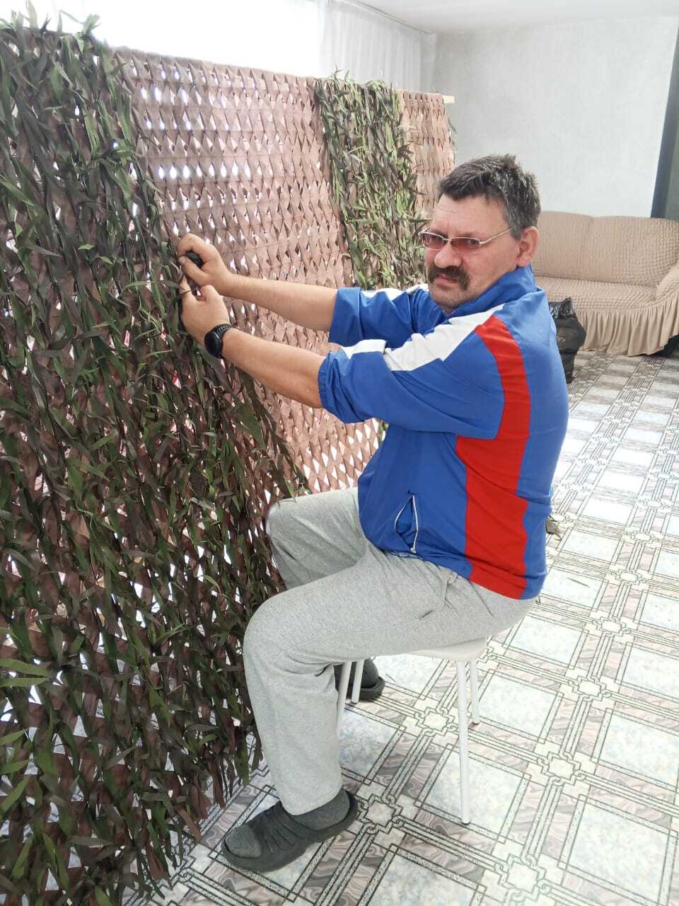 В Павловском интернате проживающий, плетёт сети для СВО. Месяц назад, Вдовин Сергей, житель нашего интерната, кстати он из группы волонтёров, по зову, не по приказу, принялся за непривычную для себя работу. За прошедшее время Сергей, практически один, изготовил 2 маскировочные сети. "Я беру в руки ленточки, делится Сергей, вплетаю их в дели, закреплённые на деревянной станине, а сам про себя говорю:" Дай Бог вам, наши незнакомые воины, вернуться живыми". Плету всегда с хорошим настроением. Руки мои плетут сети, а в голове думки, что все мы вместе-коллектив. Мы-сила. Мы-фронт и тыл. Примерно так, наверное, думают все те, кто приходит сюда в свободное время. А это и сотрудники, и проживающие интерната. Приходят кто на полдня, кто на день, а кто-то часа на два. Ведь этот труд-это вклад в будущую Победу.